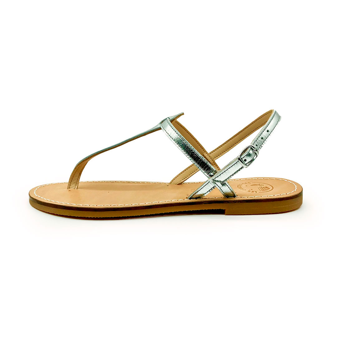 Cuir métallisé : Cuir de chèvre métallisé • Lanières doublées avec un cuir de veau et cousues à la main.